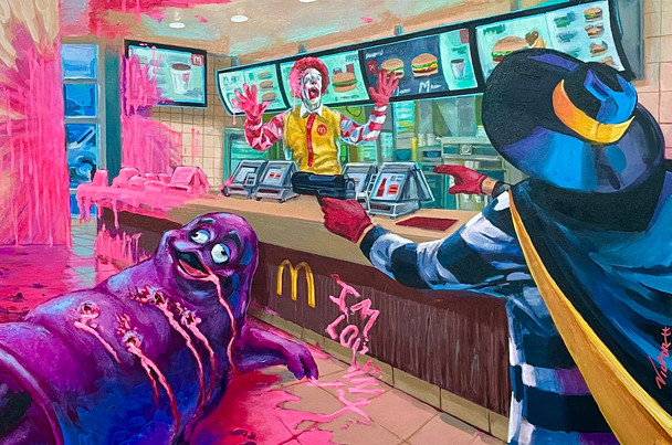 18 x 24 Acrylic on gesso board= For the "Canceptual [v.3] Show at Crewest Gallery in LA. The can is made of cardboard-{I cut a shipping tube in halfRelated content