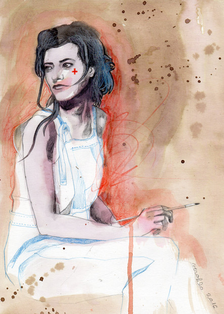 "Thanks Brother D!!!! Painting this has been a struggle=alot of Frustration/Self-Loathing/murderous thoughts..just like marriage..as I sit here and cry like a bitch"
