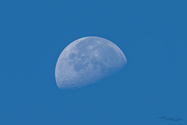 Here's is a rare day time view of a half moon. It was taken about 3:30 in the afternoon May 30th of last year.Related content
