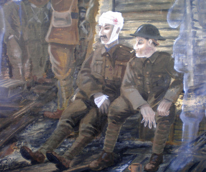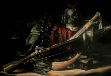 Oil on large canvasI painted this from a tiny photo that an Indian Restaurant was using for its logo. I could find the original anywhere. This large painting measuring 150 x 150 cm now hangs pride of place in the British Raj restaurant. The original photo was slightly blurred, so to keep with the era and authenticity of the shot, I painted it with that same blurred effect, using Naples yellow and Raw umber as my two main colours. I personally love the small collie dog in the soldiers lap as I feel it shows the kindness in a harsh world of Victorian commonwealth. Hope you like?