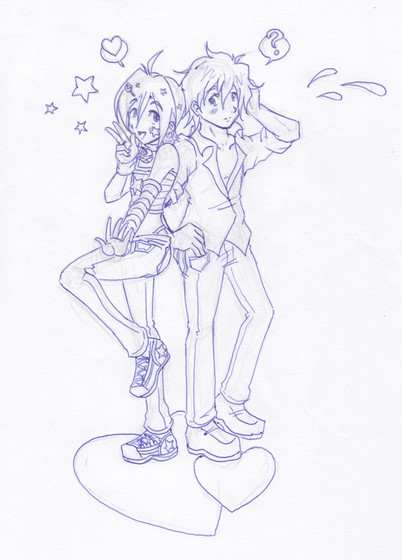 Been a while since I've submitted something worthwhile. Anyways, I was inspired by ~Artsammich 's blog and realized how fun it is to go "freestyle." Anyways, I was (sloppily) doodling and ended up with this. I think I'll stick to this style and go from there (and hopefully get better at lighting and shading). I'm sorry for the odd anatomyOh, and the other guy is because he's pretty much the opposite of me
