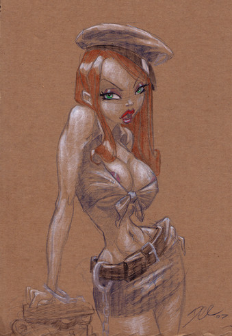 In addition to working full time for Cartoon Network on Class of 3000 I also work on several projects on a freelance basis. I like to get involved in all different types of projects to help keep my skills sharp and keep me enthusiastic about my craft.... It also increases my strength in versatility as well as keep the numbers up in my bank acct......thank god for freelanceAnywho, I recently became involved w/Kung Fu Girl.....a revamp of an iconic character from overseas in Japan that is now being turned into a 3D TV show... I am lead designer on the project and although I cant show any of the actual designs I felt this piece could be displayed b/c it is nowhere near the actual look or style of the show. It is one of the first sketches I did when asked to submit some work.....I never cleaned it up nor redrew it, so forgive the crude line and pencil smudges..