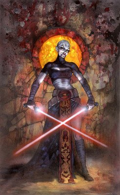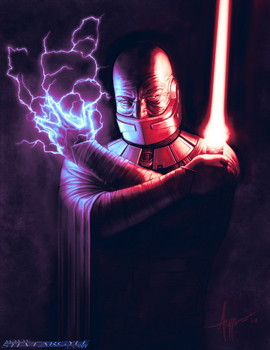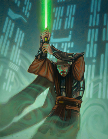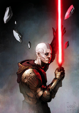 Looks like you've been inspired by the Ulic Qel-Droma's cover from "Lords of the Sith", you performed a very fine artwork, might I say.