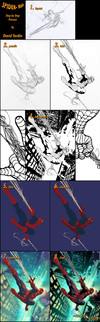 It's both annoying and amazing that you can do all these masterpieces with just a mouse. I like the relaxing background colors. Spider-Man's nightlife must be awesome.