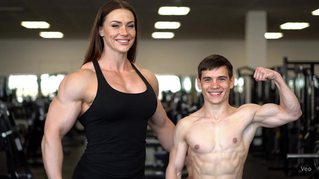 MuscleLadies - Girls vs Guys - Size Comparison at Gym - Preview [🤖]