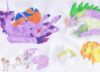 First of the few drawings I completed in the past days, starring what's becoming my personal OTP with a bit of (what I hope is) character development. The scene takes place after this , and I was so inspired (strangely) that I even decided to write a short semi-dialogue to accompany it. Now, since I haven't drawn ponies nor written anything in the last, uh, decades, I apologize for any inconvenience you might find. Also, the scanner decided not to cooperate and cut part of the drawing, but oh well. Little warning for the small story below: it's slightly NSFW - nothing explicit at all, but, like, I almost wanted to get there. Almost