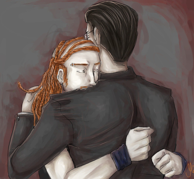 Full title is Back Off, Jackass... but it bothers me that I can't use commas in titles.This was for a weird and very dark idea a friend and I were scheming up for some time that never got off the ground. We originally intended to do a fancomic where there's this zombie apocalypse at Mordhaus and Toki is infected and yadda yadda yadda. It was a cool idea, but yeah no... didn't ever make it out of the starting gate. Lots of Nate/Toki shippers were at least enticed by this drawing, but that's about all the further it got. I went on to do Dethkomic, shortly after, though...