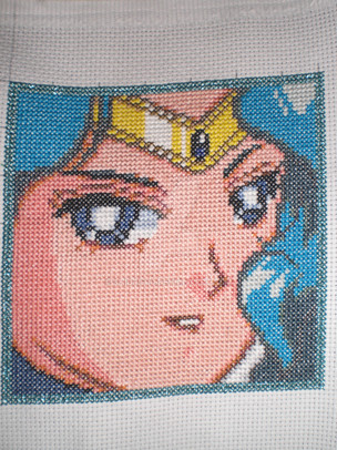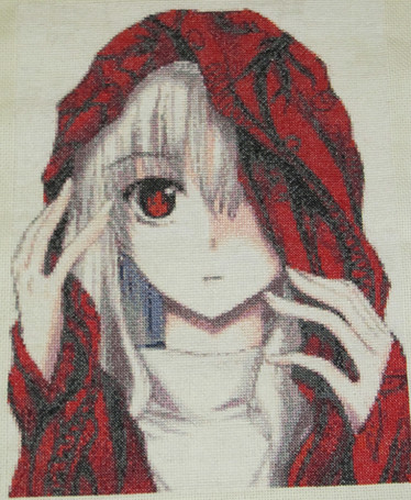 I just finished her this morning!! I really like her-- except I might change the mouth colour-- a bit light!I'm not sure of the adia colour, almost like a delft blue 14 count.
