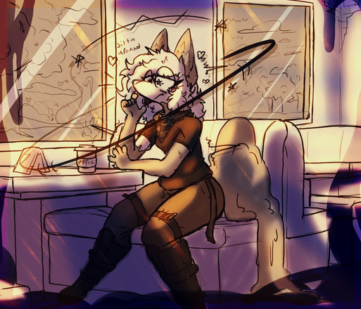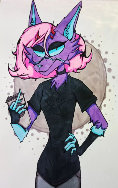 #anthropomorphic #blood #coffee #eyelashes #furry #fursona #handsign #jackal #oc #shaded #slime #static #sweater #sweatpants #bigtail #anthrocharacter #dawrk #bloody_nose #slime_creature