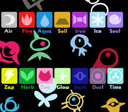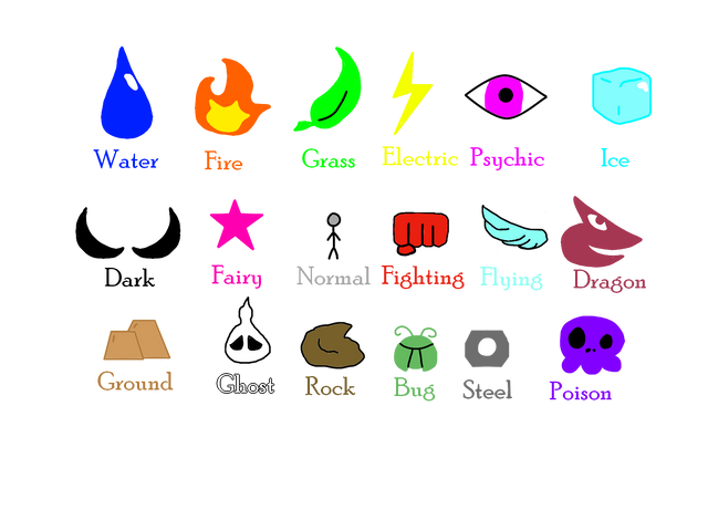 Here are all of my Fake Pokemon types.I'll explain the Blood, Spirit, and Wood types.