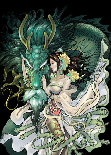 This is an amazingly detailed and rich picture. The only slightly jarring note is the golden eye on the dragon - to me it is a distraction because it removes any expression from the dragon's face. All in all, though, it's beautiful. However, I'm not an artist, so definitely take my comments with a huge salt lick. I just know what impresses me, and this does.