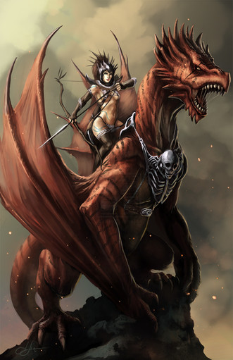 This is a very beautiful piece, and shown in a style not commonly used for this kind of artwork. The detail you've put into this picture is amazing, and I cannot imagine the amount of time you must have taken to complete this. This piece is not very original (I mean that there are many like this out their), but this is one of the best I've seen. The small things like the clothing and armor are what makes this picture stand out most. The only thing I recommend is a background. What I've also failed to mention above is that this picture contains several styles. I'm not sure if this was intended, but: The wings and underbelly look as if they were shaded and colored like a comic strip or graphic novel, while the woman and the rest of the dragon seem to be in a more realistic style (though still cartoon). The contrast of these two is one of the best things about this piece, earning it a fair score for originality.