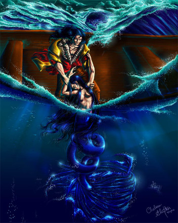 The impact of this piece is very strong because it is simple, just has the details that makes it pop. The flow of the piece brings it to live and draws the viewers attention to the two merpeople.