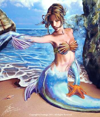 i love the mermans tale its just beautiful!!! This looks so sweet and yet they both have this curious look about them....just breath taking!