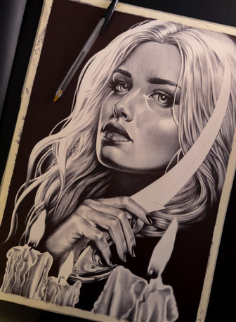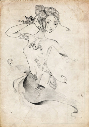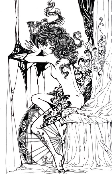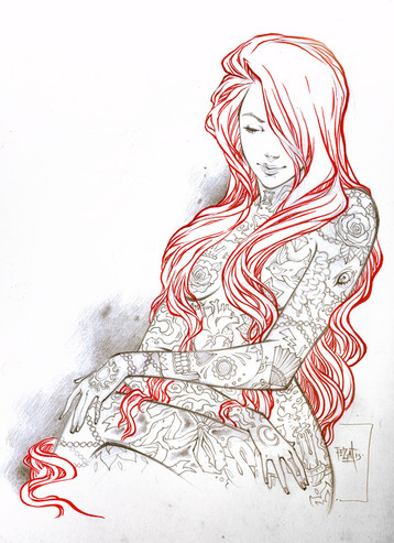 Love the design and placement of the hair. Mystery with sexiness nicely drawn.