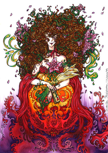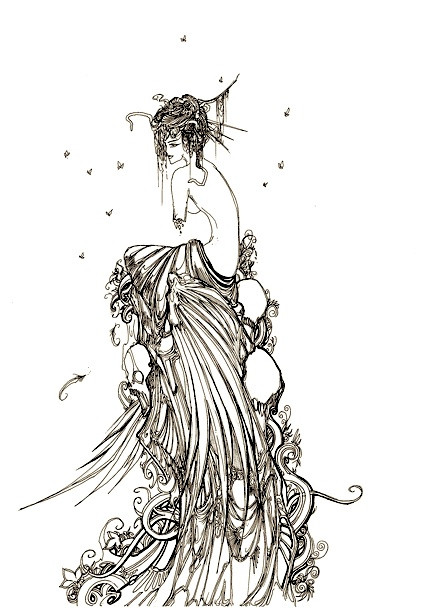 I love how your coloured the abstracted designs around her and kept her lines narrow. Very nicely done.