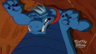 Scene from Disney's Quack Pack episode Island of the not so Nice.Quack Pack and Knuckles are owned by Disney.