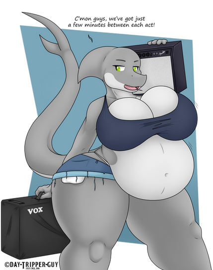 Using the same shark girl from that pic was a good idea I think. We now know that she's a roadie for a random band, carrying the amps around since she's rather strong but she has quite a temper.