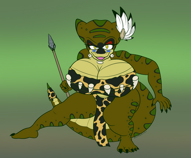 I wanted to give her a tribal looking with the leather skirt and that lance -3-