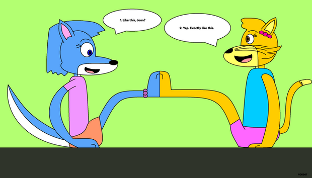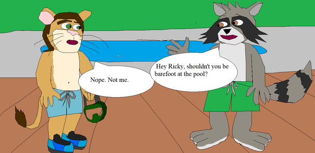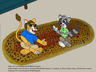 This is a collab I did with , where Bobby Catmull from Zootopia is asking his persona, Ricky The Lion, why he wears shoes while everyone else doesn't, which in turn was inspired by an RP I did with him. As you can see, the setting is a school gymnasium.All content belongs to their rightful owners.