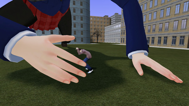 "Haaaaa" she screamed when she hit his hand.