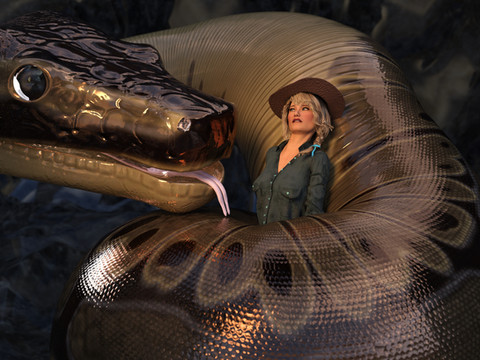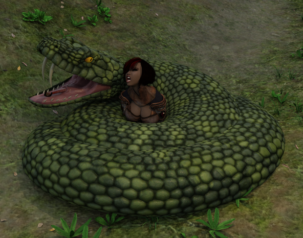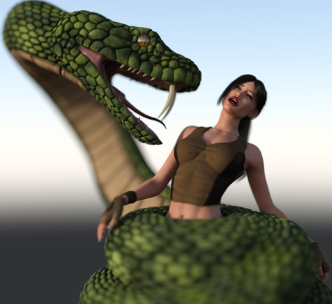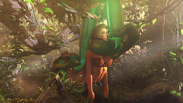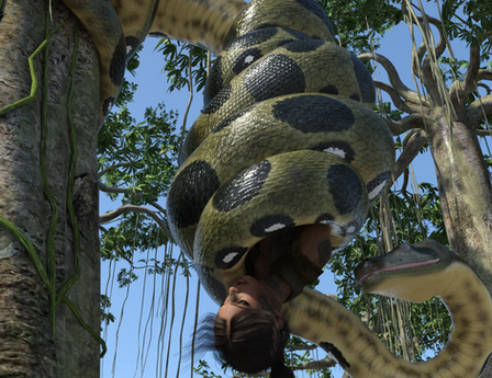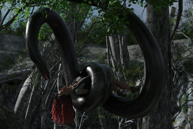 This one is inspired by a scene in one of the Anaconda sequel movies (I don't remember which one). Someone is pinned underneath a large tree branch and squeezed against it. I thought it was a really cool concept, so here's my version.Related content