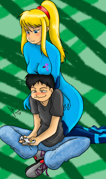 ....WHAT!? I can dream to! 0o; ...XD lol this was siting in my sketch folder so I decided to get it finished I like how its came out lol love samus's face she seems in a state of bliss XD and Im just...well you can see for your self really XD!Samus Aran © To Nintendo