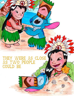 Awww! SOOOO CUTE!Β Β Fangirling in the inside right now. You drew both of them very well and I think it's funny and cute on how Stitch tries to scare Lilo. You may be a little monster Stitch, but you're too cute to scare Lilo and everyone else out. Β