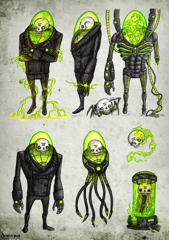 This was for a Remake/Remodel discussion where the subject was a little known pulp character called "The Octopus."My take on the character is that a geneticist, Dr. Norvel Jacobs, in a hospital research laboratory turns to self-experimentation when the funding on his project is cut due to a lack of results. The scientist is mutated into a octopodal creature who escapes into the sewers beneath the hospital. The Octopus plots domination over the world above with the aid of his "ultra-violet ray" gun capable of transforming ordinary people into monstrous members of his "Cult of the Purple Eyes."