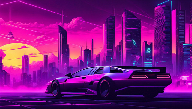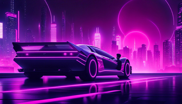 #digitalart #wallpaper #scifi #cyberpunk #car #neon #vaporwave #80s #ai #dreamup #digitalpainting #ai_art