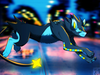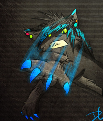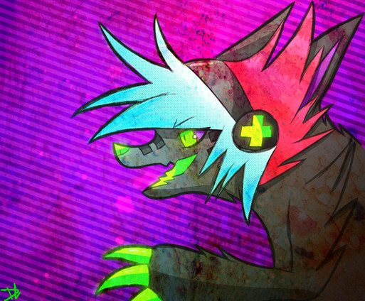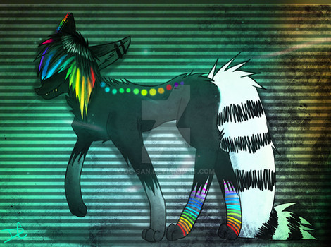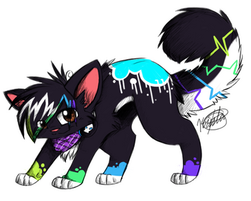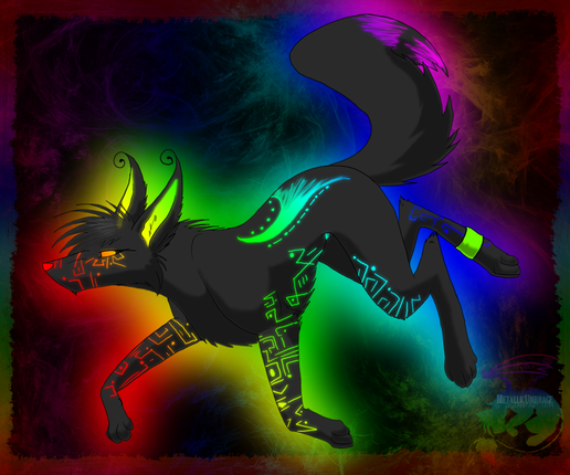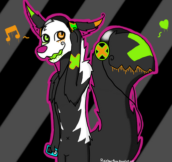 I must admit, I'm in love with this. I know this rave dog design has been done many times (the black with rainbow stuff), but hey, I made it my own.Anywho, he's a DJ. He also composes Dubstep music, and I'm thinking that his name should be DJ Funkymunchkinz. : P