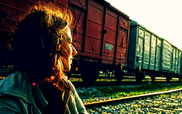 Another great photograph. I think it is really neat how there is another train in the background. Kind of gives you a better idea of where your characters are. Great job. There is this great feeling coming out of your photograph. I cannot quite xplain it but I like it! Great job!-Steve