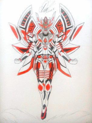 This Rider form is a fusion of Kamen Riders Rose, Glyphe, Shade, and Blaze, who are the four members of team RWBY. It is accessed through the use of RWBY Dust Driver and RWBY Rider Totem. It was said that this is the ultimate manifestation of a Hunter, one that is similar to the might of the Four Maidens of Seasons. Should the power of the Four Maidens fall into the wrong hands, this could be considered as humanity's last resort.As the name implies, Kamen Rider RWBY combines all of team RWBY's might, all amplified with the power of the 20 Heisei Riders. The Rider Totem can be swapped out with the other Rider Totems to release their respective abilities. The armor is also built with a combo weapon called the Pollinator, consisting of a scythe/dual blade/gun combo weapon and a pair of shotgun gauntlets to withstand the weapon's immense power and use telekinesis on it however the users wish, whether to call the weapon back or use it as a levitate weapon.