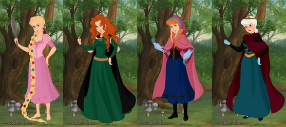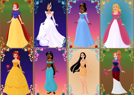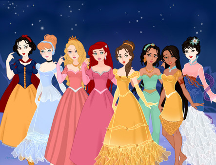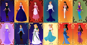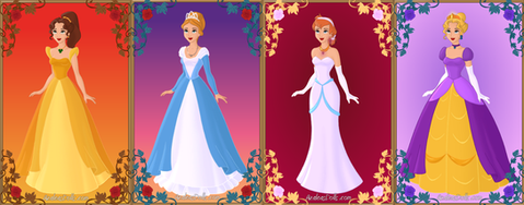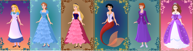 This is a sequel to "From Rags.................." [link] . This time I decided to make the princesses in their Ballgowns/Princess dresses.From Left to Right: