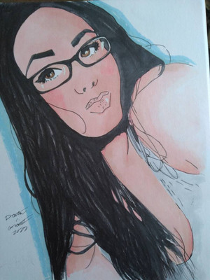 I know that I've done so many versions of this one, this one is my final version. For real this time. For those of you who are new to watching me, this is a portrait of my longtime crush Jenna Burke. I've had a crush on her since 2nd grade, but she's never felt the same way, I don't think. She has two kids from two jerks that mistreated her and left her. I love her kids as my own, but she'll never know that. I honestly don't feel worthy of her anyway, I've made mistakes in the past I'm not proud of, and I kinda look at her coming back into my life and not wanting anything to do with me as punishment for those mistakes. I know that I didn't do a good job of describing this, I may rework it later. x13x13x taught me the word That ended up being the title.Materials: Grumbacher Watercolors, Grumbacher Watercolor paper, and Prismacolor illustration pens