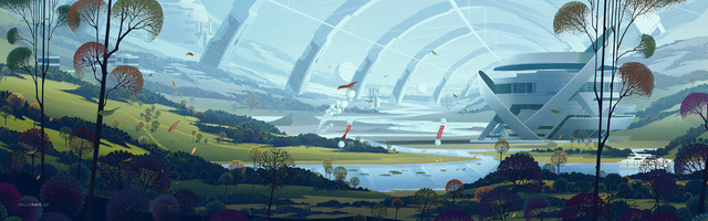 Thought it was rendered.. until I saw the tiny cables! Great job dchan! I think this begs for more of the same, but I would add some bizar fauna, and more variety of flora. Too much buildings seems too real. XD