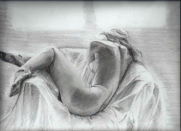 Beautiful composition and excellent work in the shading and details. I especially admire the way you drew the individual wrinkles in the cloth. Very well done!