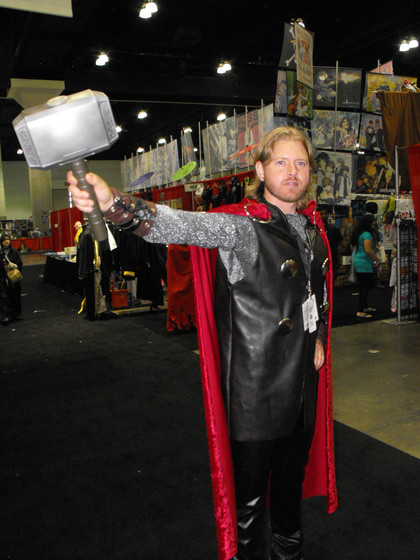 Casually attacking this stall holder (Andy Cole) with my bro; he's an awesome team player.He draws superheroes for a living check out his page, friends.