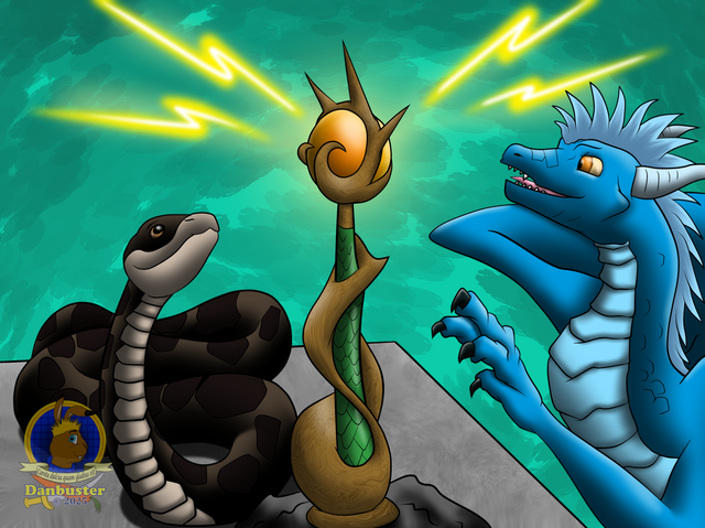 Catatumbo (Ca-ta-TOOM-bo, Barí meaning "house of thunder") — a Venezuelan lightning dragon, originating from the stormy regions near Lake Maracaibo. The youngest dragon of the group, he is thin, lanky and streamlined, and literally crackling with youthful energy.