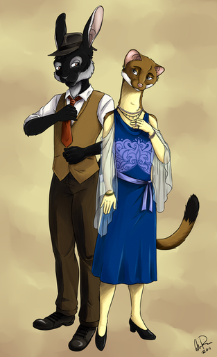 One more drawing of Leroy "Hydrex" and Pearl Rudderbuck that I've finally got round to vectorising and colouring.Just to make a change, they're wearing their spiffy smart clothes!