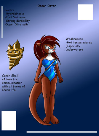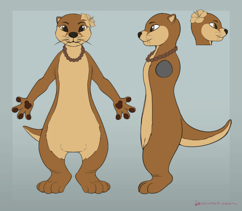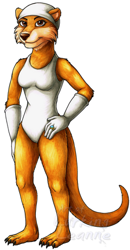 I just realised that I've got reference pictures of all my other characters... I never put Pearl's up! And how can I give people reference pictures when they're not here? Anyway, she'd be clobbering me for not putting her up, claiming I was discriminating against her because of her gender! She may be a beautiful otter-girl and have a sweet nature, but she's also independent and tough!A character reference for, Pearl Rudderbuck (née Oceanflower), the wife of Hydrex the Otter.