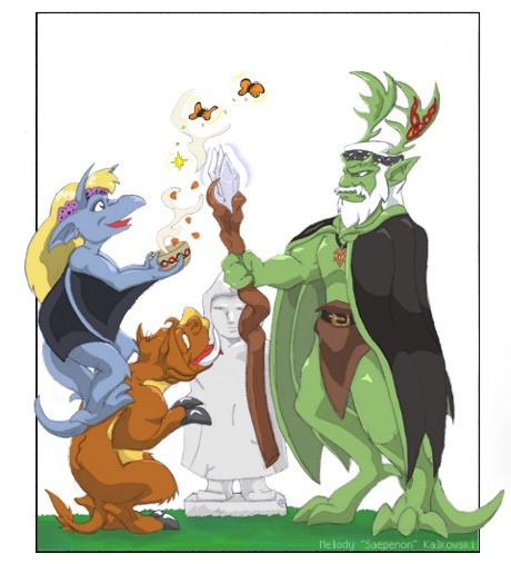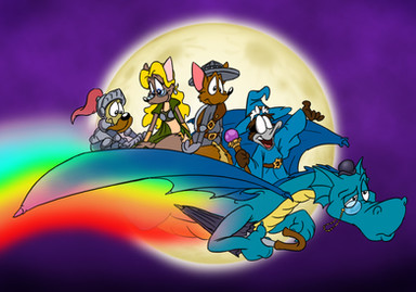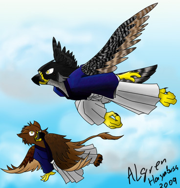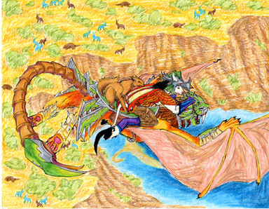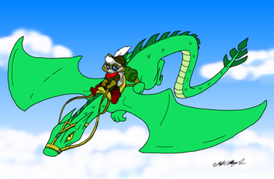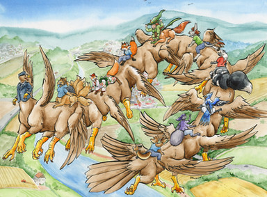 It seems Retsubnad is heading off to somewhere with his loyal weasel-sidekick Wally Babbleton and gryphon-steed, Thoronraw. And, if we speak in terms of Sonic Heroes, they're in Fly formation...Related content