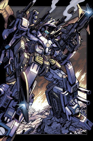 I have to admit this design makes him look a lot more badass . The detail is stunning with both the mechanical parts and the war injuries. The brush and blurring you did for the lasers is also stunning. Everything really ties the scene and feeling in the picture really well.