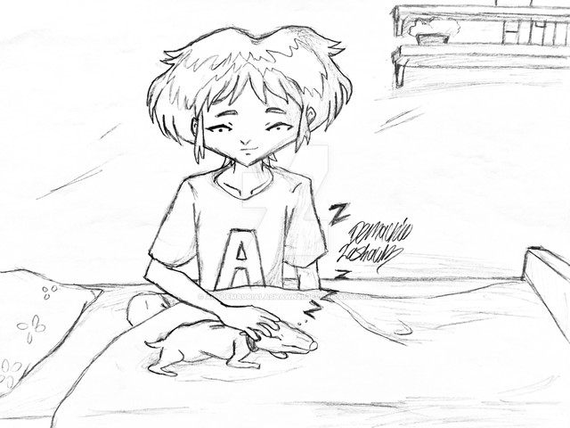 Max se estaba tomando bien el nuevo toque de queda tomando tiempo para dibujar y entretenerse ... Pericles también estaba aburrido, así que decidió acostarse junto a Max ... así que Max encontró su modelo