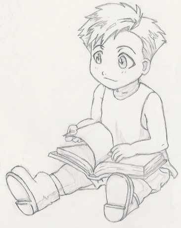 He concentrating. Everyone's favorite little drawy-boy