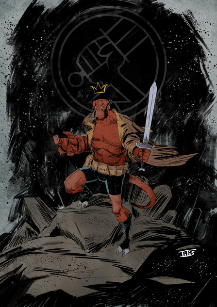 #red #colourful #demon #fanart #fanartdigital #hellboy #mikemignola #revolver #sword #hellboyfanart #artworkdigital #hellboyart