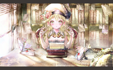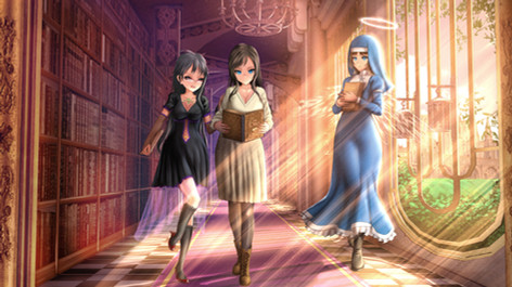 this reminds me of students at a magic school studying at some sort of library mixed in with a maid cafe.