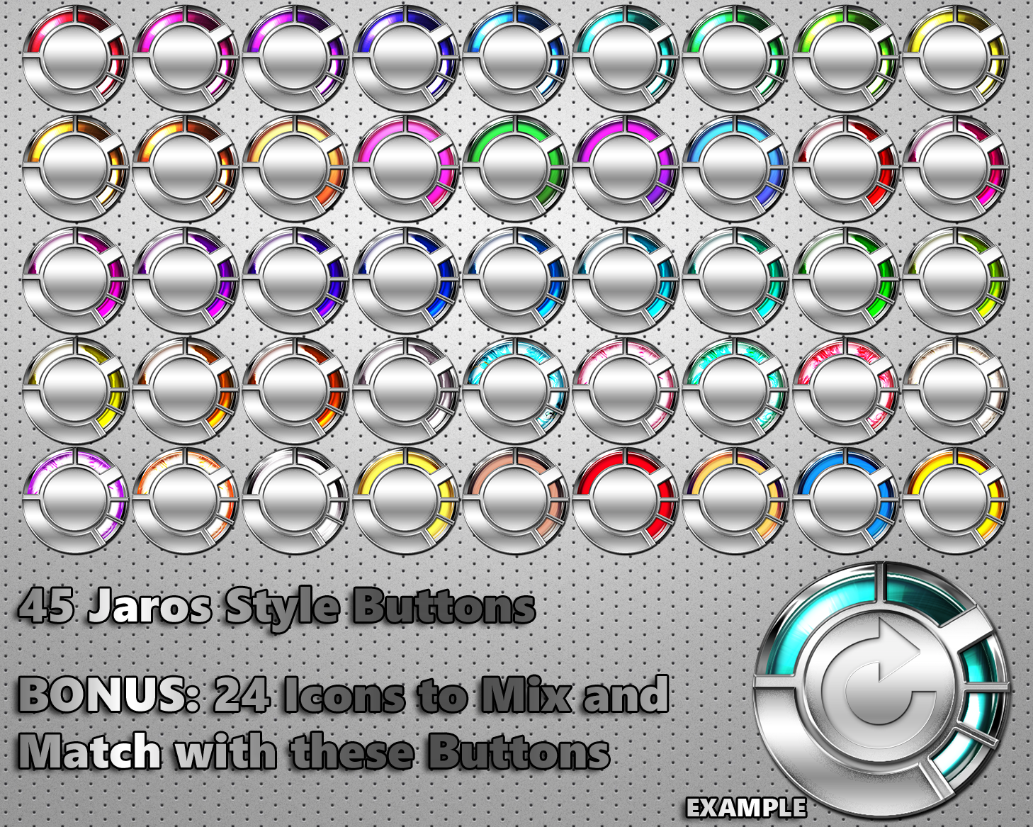 Here is my Jaros Style Button Pack for purchase and use in any project you see fit. Can be used Professionally, Personally or Commercially once purchased. Designs may NOT be resold under any circumstances. If you want specific items designed for you, I can do that too! Please feel free to contact me at anytime! Thank you