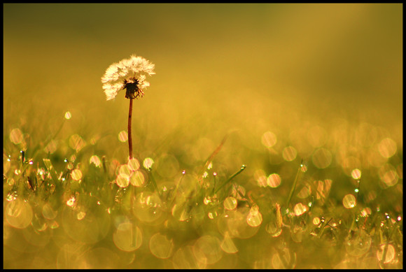 what a beautiful photo harry. I like how u can see the dewdrops so clearly...the little dandelion 'flyers' look so delicate amongst that green lush of grass...