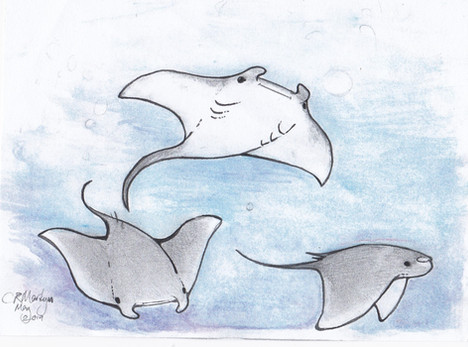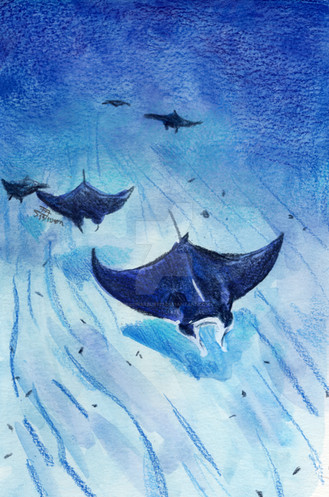 My daughter is learning about manta rays - one of my favorite animals.Colored paper and colored ink.